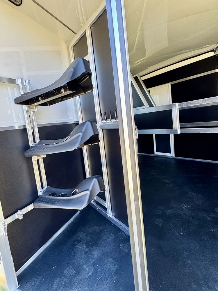 Tie Ring in Each Stall, Load Light w/ Switch, Collapsible Rear Tack, Swing Out Saddle Rack 3, Bridle Hooks, Fans in each stall