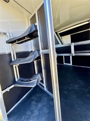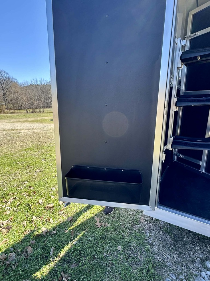 42 Stalls Width, 24x 32 Drop Feeds on Street Side Head Side, 19x64 Drop Feed on Curbside, Lined and Insulated Horse Area, Telescopic Gate and Fixed Gate, Hydraulic Single Leg Jack, 50/50 Rear Doors, 20 Walk Thru door to LQ