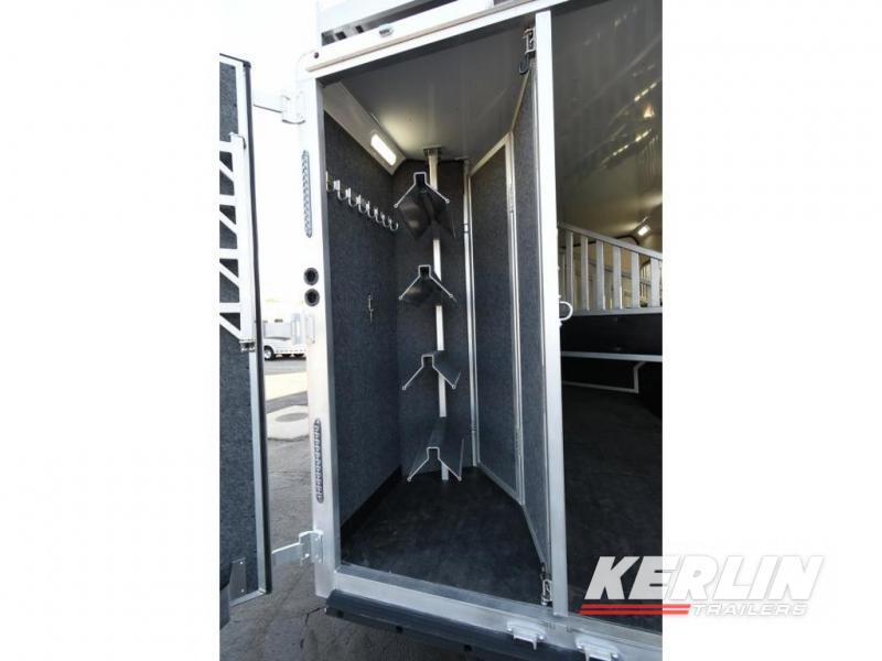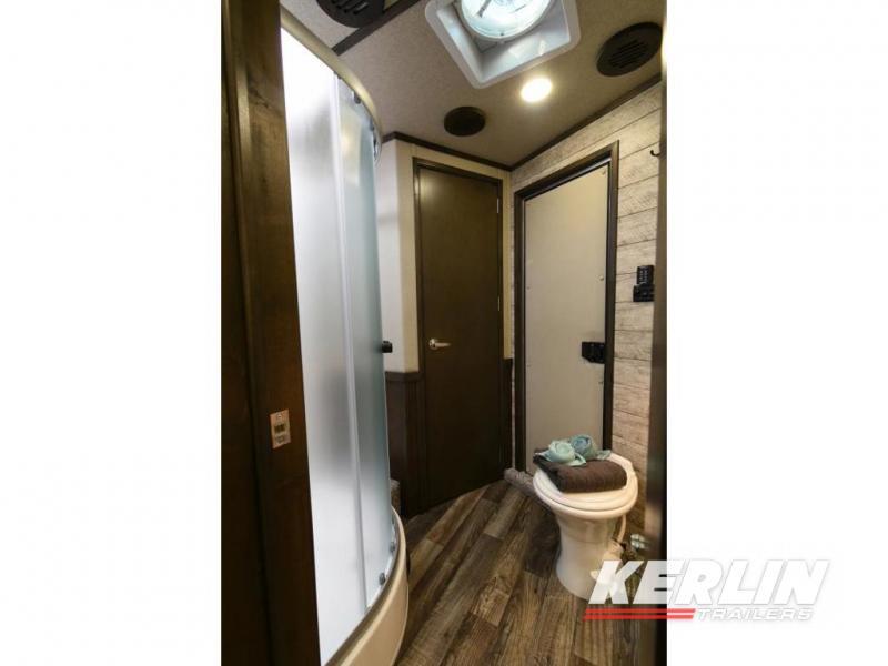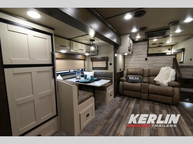 This Merhow Farmhouse trailer speaks for itself! It is beautiful with many many upgrades! Fully loaded with a solid wood interiorsoft touch wallsundercabinet lightsfloor lights 9’ slide outlarge refrigerator 2 ducted ac units furnace fireplace recliners dinette/sleeper easy climb steps large bathroom vanity walk in closet radius shower walk through door lined and insulated horse area led lights airflow dividers haypod mangers generator blanket bars dual hydraulic jacks
