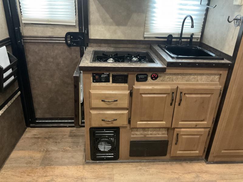 NEW REDUCED PRICE: 4 Horse Living Quarters Trailer Step into luxury with this beautifully maintained Living Quarters Trailer - a must see for anyone seeking comfort and functionality on the road! Features Include: Elegant All-Wood Cabinets with rich dark wood trim Spacious Leather Couch with slide-out for extra room Large Sleeping Area - perfect for restful nights Oversized Shower for home-like comfort Pre-Wired for Generator - ready for off-grid adventures Solar-Powered Battery Charger - eco-friendly and efficient Hayrack with Ladder Access - convenient and secure Rear Ramp for easy loading Full Manger with expansive under-manger storage Rear Tack Room - organized and accessible Whether you’re traveling for shows, camping, or long hauls, this trailer offers the perfect blend of style, space, and practicality.