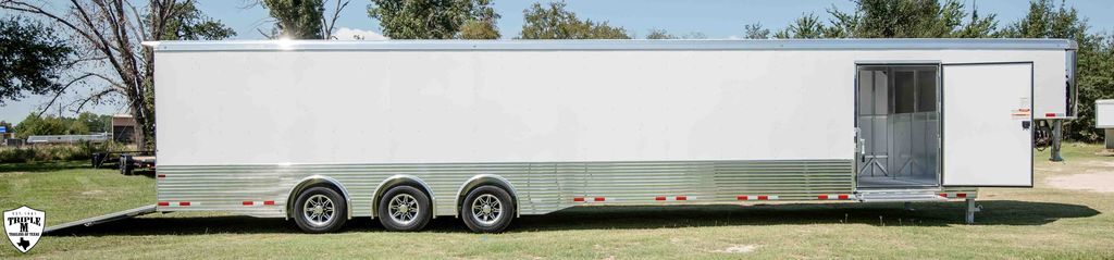 40’ EXTRA GN 40’ FLOOR * 8’6 WIDE * 7’6 TALL (3) 7K TORSION AXLES SPREAD AXLES SPOILER REAR RAMP W/ SPRING ASSIST EXTRUDED BOTTOM RAIL 48” SIDE ACCESS DOOR DUAL JACKS LED LIGHTS MORE... 7,720 EMPTY 22,815 GVWR