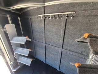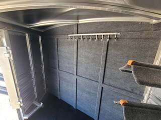 THIS TRAILER IS ON ORDER AND WILL ARRIVE IN MARCH Platinum 25’ Stock Combo 7’6” x 25 x 7 tall Mill Finish exterior skin Extremely versatile trailer!! 1st gate is horse divider with removable panel at bottom 2nd gate is normal horse divider 3rd gate is slatted center partition, keep horses and cattle separate!! Haul roping steers & 3 horses Haul 6 horses, 8 cows, haul whatever!! Plexiglas & Track on both sides of trailer 6’ hay rack & ladder 6 saddle racks, 15 bridle hooks, and 4 blanket bars in tack room!! 3 tier swing out saddle rack keeps all of your tack easily to grab!! Carpeted bulkhead wall to protect your gear Rubber mats in 30” dressing room floor for easy cleaning One brush tray and five hooks on tack door Double rear gates with double anti rack hardware Stock escape door on driver side 4 LED load lights and plenty of outside tie rings Two roof vents for maximum ventilation!! Ready for anything!!!