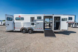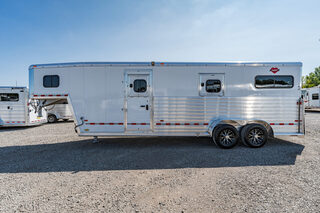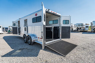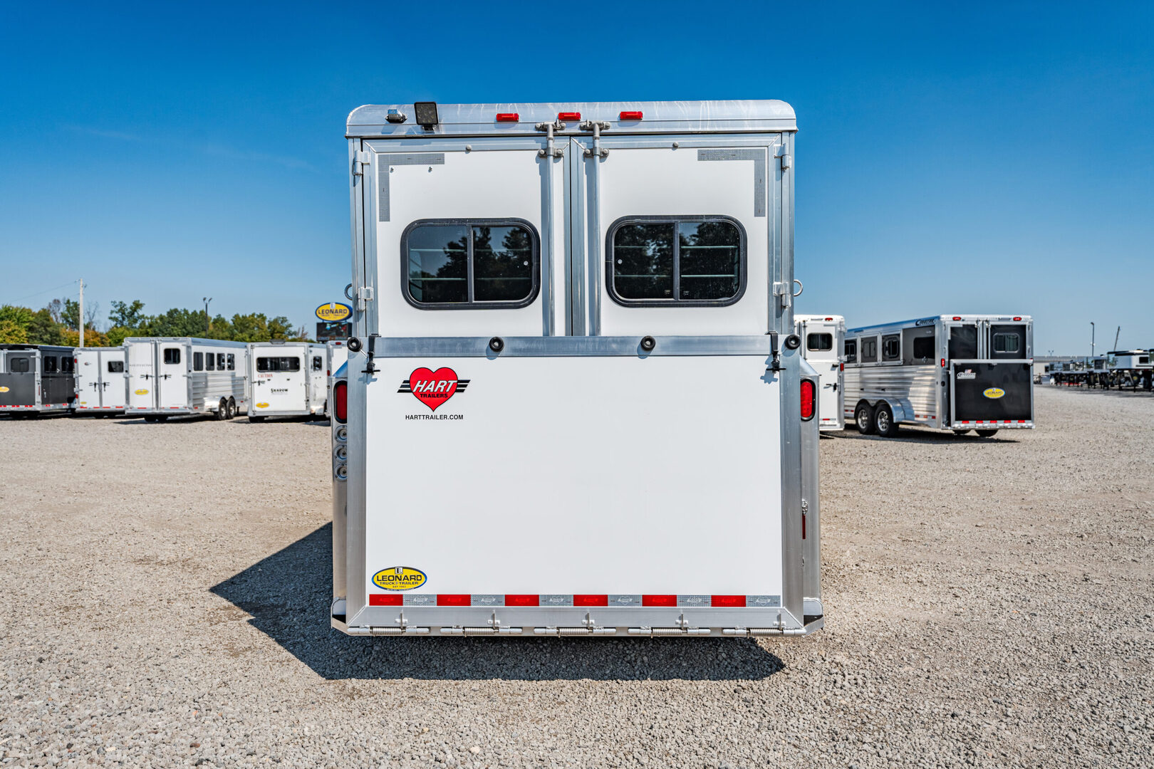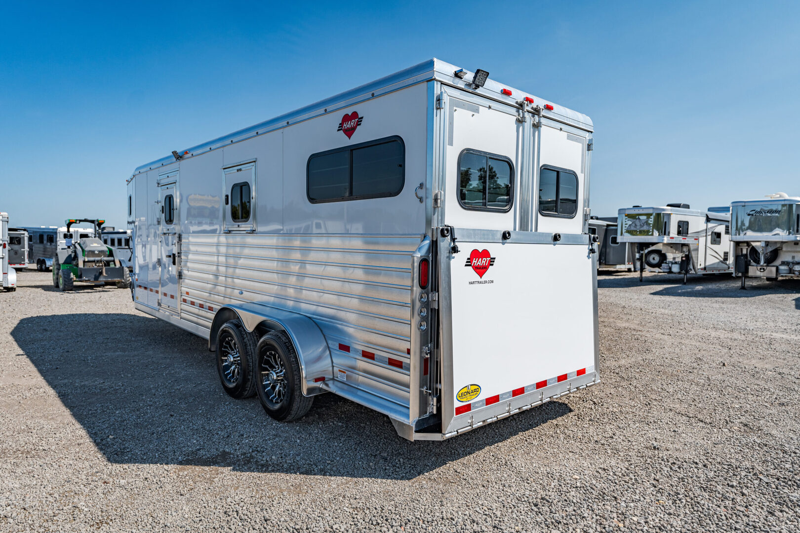 View Inventory: https://leonardtrailers.com/inventory/42195 2025 New Hart T2HG Gooseneck Horse Trailer STRAIGHT LOAD MODELSThe STRAIGHT LOAD Models offered by Hart present a variety of designs, each for a particular use.  Hart offers three different models of 2 horse STRAIGHT LOAD trailers.  The ’Thoroughbred’ and the ’Walk-Thru’ models are designed for large-bodied horses.  Both of these models are 6’8” wide, 7’7” tall and have 11’ long stalls.  Each model is available in bumper pull and gooseneck configurations.The ’Thoroughbred’ model is equipped with double rear doors, a full-width ramp behind the doors, a removable stall divider and full height escape door on each side of the stall area. 22’9” long x 6’8” wide x 7’7” tall Insulated and lined walls AND roof horse area Padded breast and butt bars Padded divider Swinging head stall Large windows at rear on both sides Side Ramp with Dutch Door  Ramp / 50-50 rear doors Pop up Roof Vents  Dome Lights in Dressing & horse areas plus external spot light Large Windows in Goose Neck Silver Sided Extrusion 5,900 pounds empty, 16,500 pounds GVW 8 Year Structural Warranty Please call us for any additional information! **We believe these specifications to be accurate. Any discrepancies are unintentional. Please verify information with a sales associate prior to purchase.** Stock Number:42195