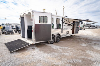View Inventory: https://leonardtrailers.com/inventory/43345 Used 2016 Bison 8312RG Gooseneck Horse Trailer With Living Quarters Fresh Trade! This used 8312RG Bison has the following features. 8' x 27' -Living Quarters: 14' Fully Equipt  -Horse Area: Mats, Pads, Completely Lined  -Escape Type: Full Walk Out  Tack Area: Rear Collapsible -Rear Doors: Double Rear Doors -Brakes: Electric -Axle: 7200# Rubber Ride  -Tires:16" -Jacks: Single- Hydraulic   Please call us for any additional information! **We believe that these specifications to be accurate. Any discrepancies are unintentional. Please verify information with a sales associate prior to purchase.** Stock Number:43345
