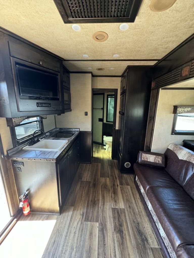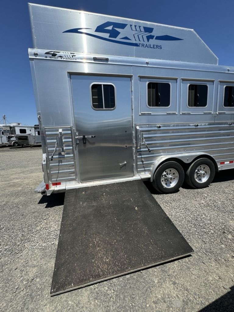 2020 4 Star Trailers 4 H 14’ SW w/Trail Boss Conversion Features May Include: STRUCTURALHeight: Width: 8’ 14’ Living Quarter Floor Length Overall Length 4 Horse All Aluminum Framing EXTERIOR One-Piece Aluminum Roof Skin White Exterior Package 2 Batteries Power Awning Red DecalsSingle-Leg Hydraulic Jack (not shown in photos) (2) Propane TanksSTALL AREA 4 Horse Side LoadAluminum Floors Permanent Rubber FlooringDrop Down Windows on Head and Tail SideFully Matted Walls Interior and Exterior Tie Rings Two-way pop up ventsAluminum Padded DividersEscape Door in First Stall with Drop Down WindowExterior Step at Escape DoorMangers TACK ROOM Collapsible Rear TackRoll Up Rear Door Bridle Hooks (4) Place Saddle Rack Brush Trey APPLIANCE 6-Cubic Ft. Refrigerator Microwave 2-Burner Cooktop w/Glass Cover INTERIOR DECOR Dual Seating Corner Lounge Sleeper Sofa Step to Bed Area Mattress Vinyl Flooring Soft Touch Walls PLUMBINGWater Heater Fresh Water Tank Grey and Black Water Tank ELECTRICAL On Board Gas Generator Flat Screen TV Interior and Exterior Speakers Furnace Ducted A/C and Thermostat BATHROOM Vanity, Medicine Cabinet with Mirror Standard Faucet Toilet with Foot Flush Shower w/Glass Door Closet CABINETSSolid Hardwood Raised Panel Square Cabinet Doors Please Note, this trailer is on consignment. Being Sold AS IS. This trailer has been ran through our service department. Pickup & Delivery time is based on the service department’s schedule at the time of purchase.*Please review all features with a salesperson. We try our best, but sometimes features and dimensions get mislisted. Thank you!*Akins Trailer Sales541-995-4884* Located in Harrisburg, Oregon* Financing Available* Trade-Ins Considered www.akinstrailersales.com