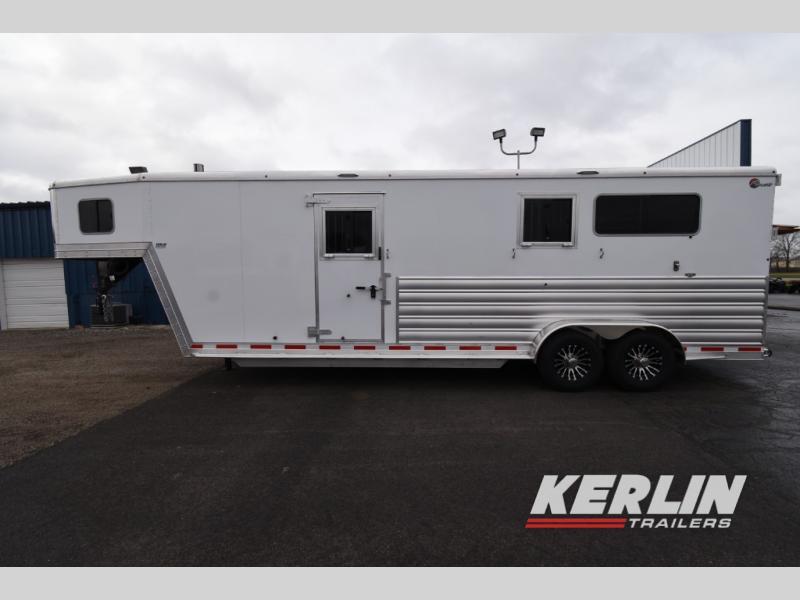 Very nice 2+1 Kiefer Genesis just rolled in! This trailer is large enough for all of those Warmblood horses! This trailer features: rumber flooringHydraulic jackrear dutch doors with easy lift ramp soild butt and chest bars large stalls with drop down windows on head side. Large box stall with side ramp and escape door walk through door to tack area 4’ front tack with saddle racks, bridle hooks, blanket bars, lined and insulated