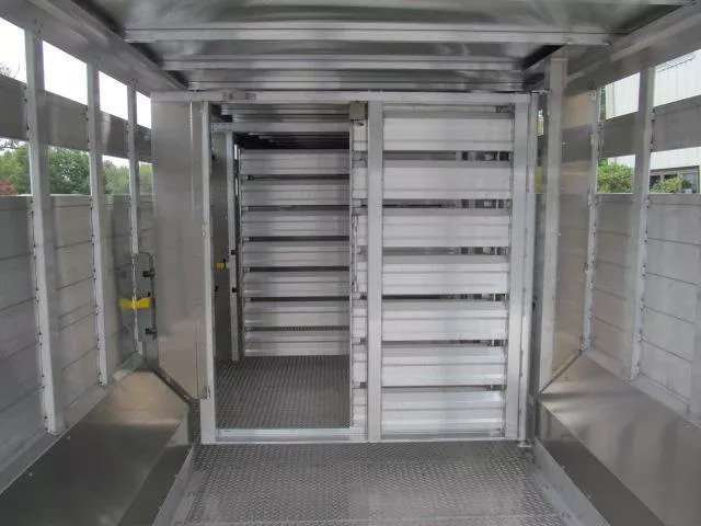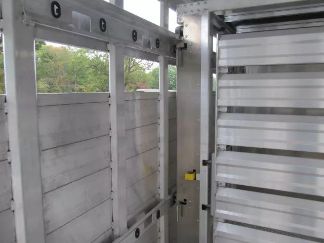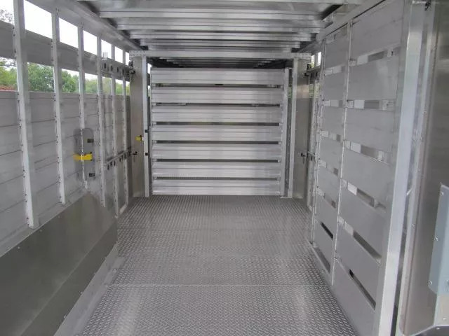 2026 EBY Ruffneck Stock Trailer 8’ X 24 X 7’1” Tall Slam Shut Rear Gate Slider in Rear Gate 7” X 5” Rear frame post Stationary Gate at front of wheel box w/ walk thru door Rolling gate w/ 12’ of rolling rail Flat ATP Floor 2 Air gaps Calf gate in peak All aluminum construction 8K axles w/ electric over hydraulic drum brakes 17.5 Tires 2 Speed jack