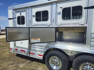 *Take advantage of this high-quality 3-horse bumper pull from Platinum Coach - built for performance, comfort, and convenience!* Key Features: * 2 x 5200# Rubber Torsion Axles with 16” wheels * WERM Flooring in the horse area - low maintenance and great traction * Telescoping Rear Divider * 18’ Deep Feed Manger on 2 stalls with 2 exterior access doors * Removable Baby Panel with rubber on both sides for added safety * Escape Door for quick and easy access * 6’ Hayrack & Ladder - carry more with ease * Spacious Dressing Room featuring a clothes rod and two corner shelves * Bright Exterior Lighting: Three long LED load lights and extra 1” round running lights for enhanced visibility and style Whether you’re hauling to shows, rodeos, or the trails, this trailer delivers the durability and thoughtful design Platinum is known for - all in a compact, easy-to-tow bumper pull setup. Contact us today at 512-746-2515 for more details on this great-looking and highly functional trailer!