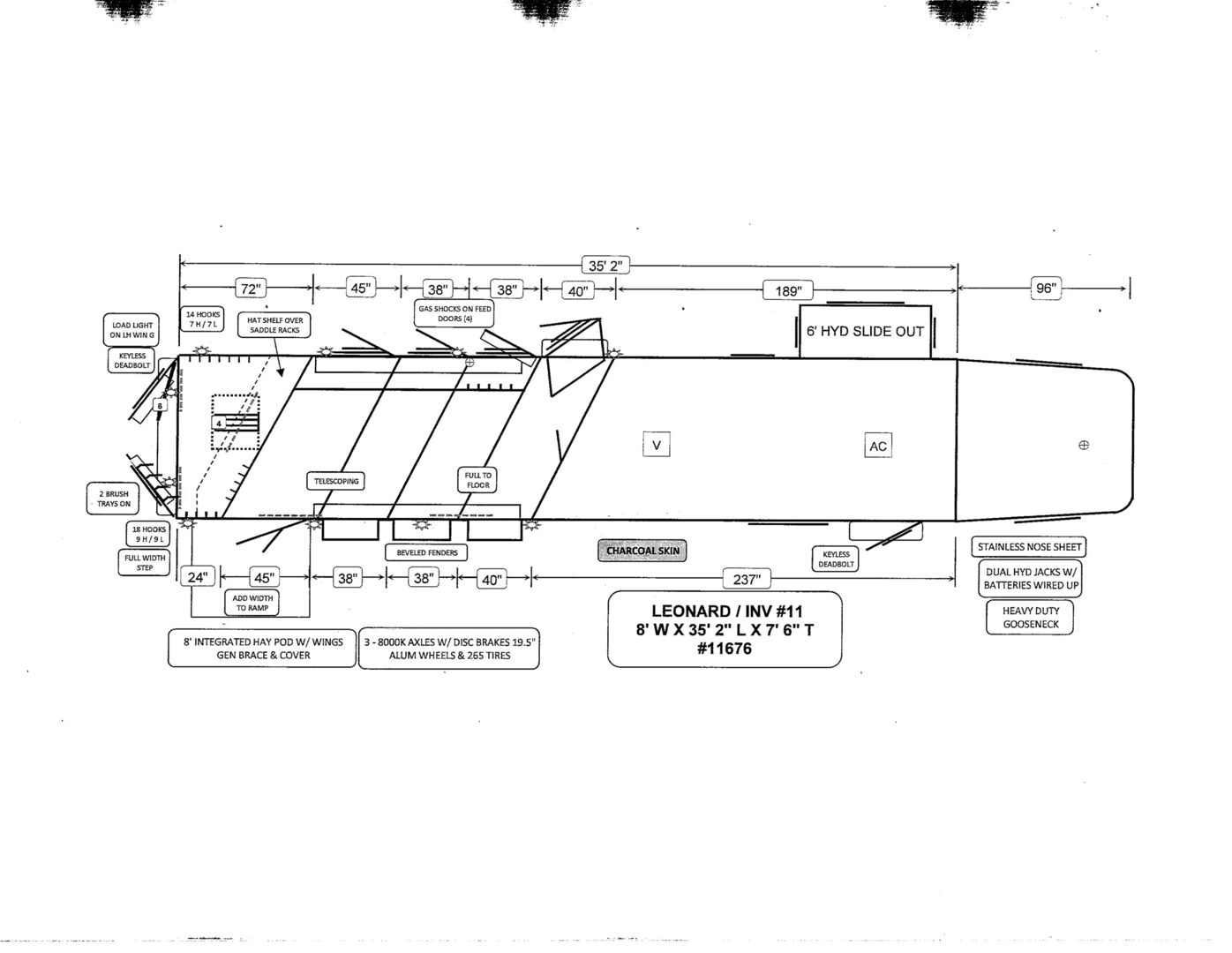 View Inventory: https://leonardtrailers.com/inventory/44994 Every Bloomer trailer includes several advanced features, many of them โ€“ such as the integrated hay pod โ€“ pioneered by Bloomer Trailers. Using the best quality and materials, our products are made to maximize the safety and comfort of your family. Our founder and CEO, Randy Bloomer, has even ridden in our horse compartments to measure vibration levels and find ways to engineer the safest ride possible for your most prized possessions. We never take a shortcut when it comes to you or your horses’ safety. Standard Horse Trailer Features                                                                      Durability and Smooth Ride -Electric hydraulic disc brakes                                                                        - Torsion axles -Spin-balanced premium tires and HD aluminum wheels               - All 2” tube walls and roof construction -Machine-polished continuous slide slat                                                - .040 one-piece continuous roof skin -.050 pre-painted white skin             -Extruded tongue and groove aluminum floorboards with support legs every 6” -Roof cross members set at 16” centers              -Marine carpet on floor, drop and pan -30,000-lb 2-5/16” adjustable coupler               -10,000-lb drop leg jack Centromeric Wheel Balancers                          -Beveled fender wells โ€“ 45 degrees Polished top rail                                                                      Doors and Windows -All doors lined and insulated with integrated hinges          -24” X 24” Drop Windows with protective bars (hip side) -Dressing room door with window                                    -Swinging feed doors with drop down windows (head side) -Permanent window bars in feed doors                                  -15” x 34” sliding windows with protective bars (gooseneck) -50/50 rear doors with windows                                              -Shock-assisted, fold-up step at dressing room door -Swinging feed door Horse Compartment -Lined and insulated roof and walls                                          -Protective rubber on walls and floor -Padding on dividers and chest of each stall                             -Flow-through bars in head and wither shields -Spring-loaded dividers with slam latch                                         -Framed roof vent per stall -Two interior horse ties per stall                                                 -Two recessed spring-loaded exterior horse ties per stall -Shin guard at loading door Storage and Tack -Stationary double wall rear tack                                             -Lined and insulated -Two brush trays                                                                   -One saddle rack tier per horse (up to four) -Ten bridle hooks                                                                        -Blanket bar Electrical -Rocker-style exterior light switches                                   -One LED dome light per divider -Three LED loading lights                                                         -Front and rear junction blocks -All wire connections soldered and protected with shrink tube -All wire routed through aluminum, protected with rubber grommets               -Turn signals high and low Please call us for any info. Stock Number:44994