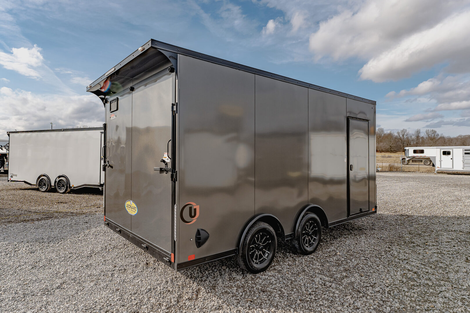 View Inventory: https://leonardtrailers.com/inventory/45737T Stock# 45737T Used 2026 Bloomer 8 Horse GN Trainer Trailer General Information Overall Size: 8’ W × 36’4” L × 7’6” T Model #: B8GST337 Axles: Three 7,000# Heavy Duty Torsion Axles Brakes & Axles Electric / hydraulic / disc brakes Torsion axles Wheels & Tires Four Alcoa 16” aluminum wheels Roof & Gooseneck .040 one-piece continuous roof skin Lined and insulated roof (full length, up to 6’ SW) Aerodyne stainless steel gooseneck nose  Coupler & Jack 30,000# 2-5/16 adjustable coupler 10,000# drop-leg jack  Ventilation Framed roof vent per stall  Lighting LED running lights 4 turn signals (high and low) 6 flush-mount LED loading lights 1 LED dome light per divider 1 LED dome light in rear tack Push-button exterior switches  Doors & Steps Swing feed doors with drop windows at each stall Gas shocks on swing feed doors Dressing room door with 14” × 20” window 50/50 rear doors with 14” × 20” windows Two oversized tack room doors One fold-up step at dressing room door  Additional Options   Size change to 7’6” or 8’ wide and 7’6” tall (ILO standard) Footage – cost per foot Add width and height per additional foot over 30’ Tri-axle 8,000# with electric/hydraulic disc brakes (ILO tandem 7,000#) Triple 18-ply Continental HTL 245 tires w/ 17.5 Alcoa aluminum wheels (6,005# cap)  Dual-leg, 2-speed drop-leg jacks  Add heavy-duty gooseneck hitch  Rubber on both sides of removable panel or full-to-floor divider  Swing-out blanket bar for door or wall  Additional saddle rack setting  3/4-width rear ramp – 56” tall   Change rear tack wall other than 50/50   Side entry R/T door ILO standard rear entry  Keyless deadbolt lock We offer outstanding financing options, accept trades, and can arrange nationwide NO HASSLE delivery! Inquire today for more information! (888) 333-6613 **We believe these specifications to be accurate. Any discrepancies are unintentional. Please verify information with a sales associate prior to purchase.** Stock Number:45737T