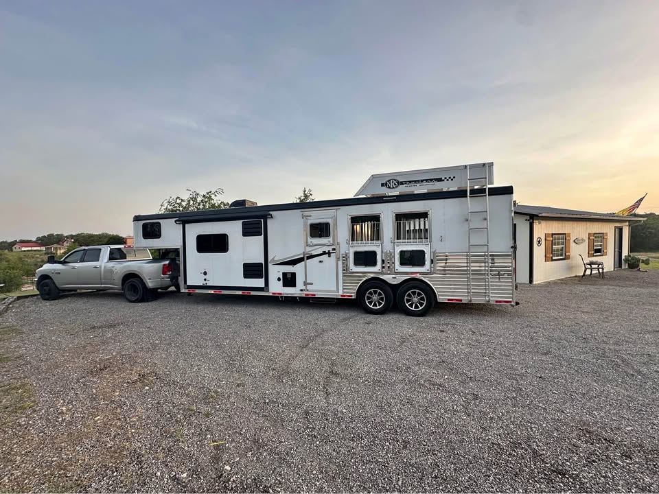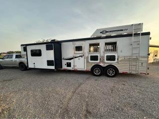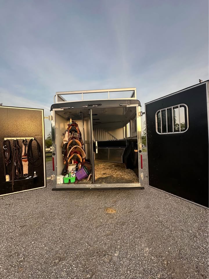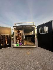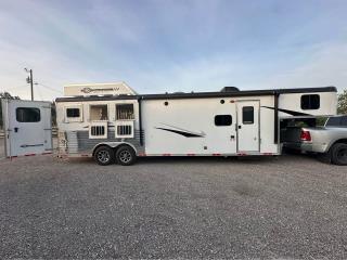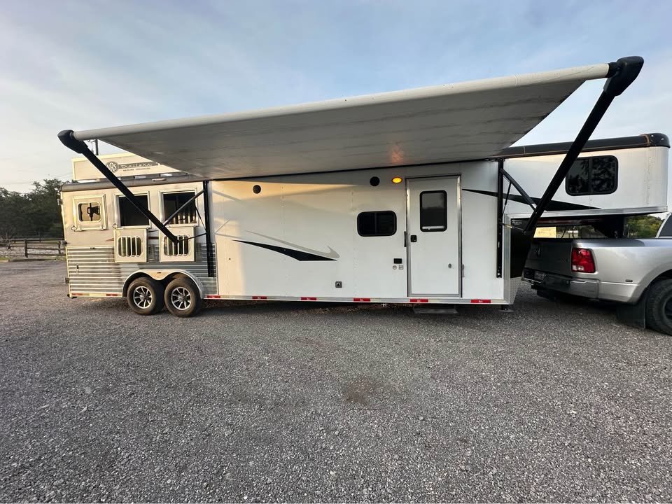 2022 Bison Ranger 3H horse trailer for sale. 11Ft slide and 8ft wide. Has electric jack, AC, awning, speakers, stove, refridgerator, TV antenna, propane and more! Barely used with 2 beds. Normal wear and tear. Fully loaded and ready to go!