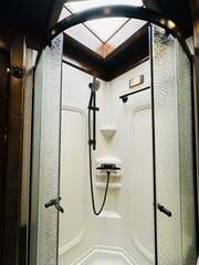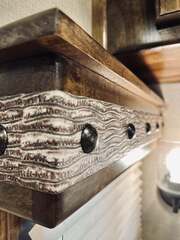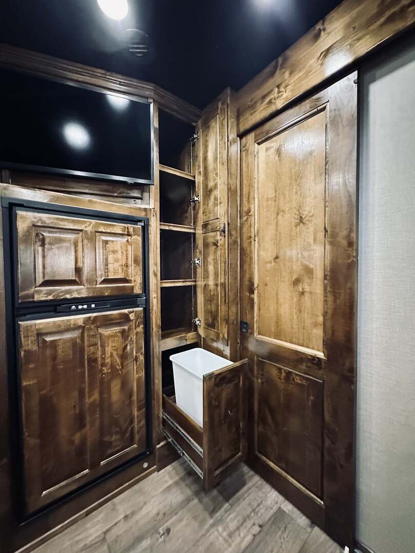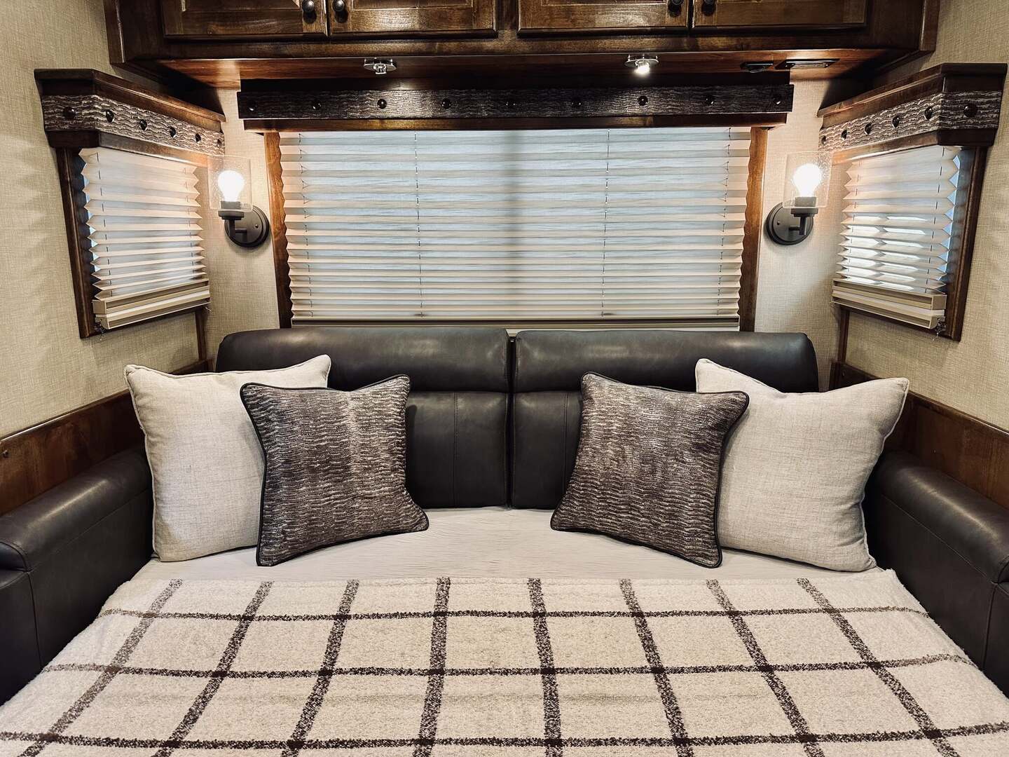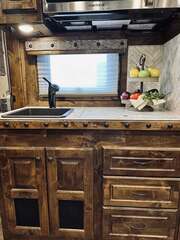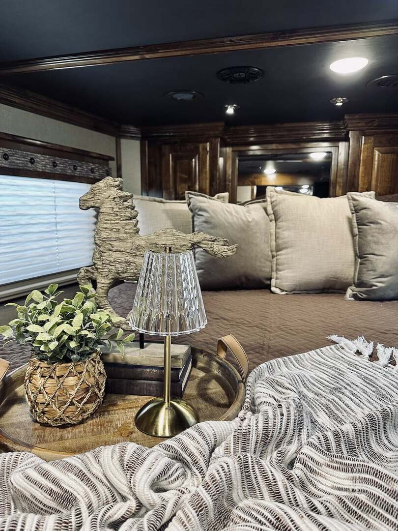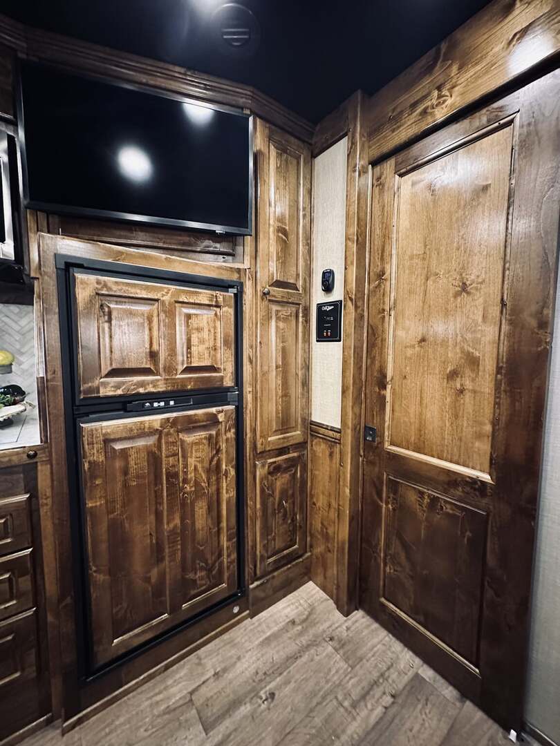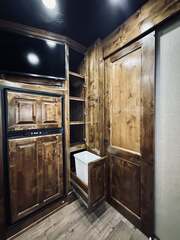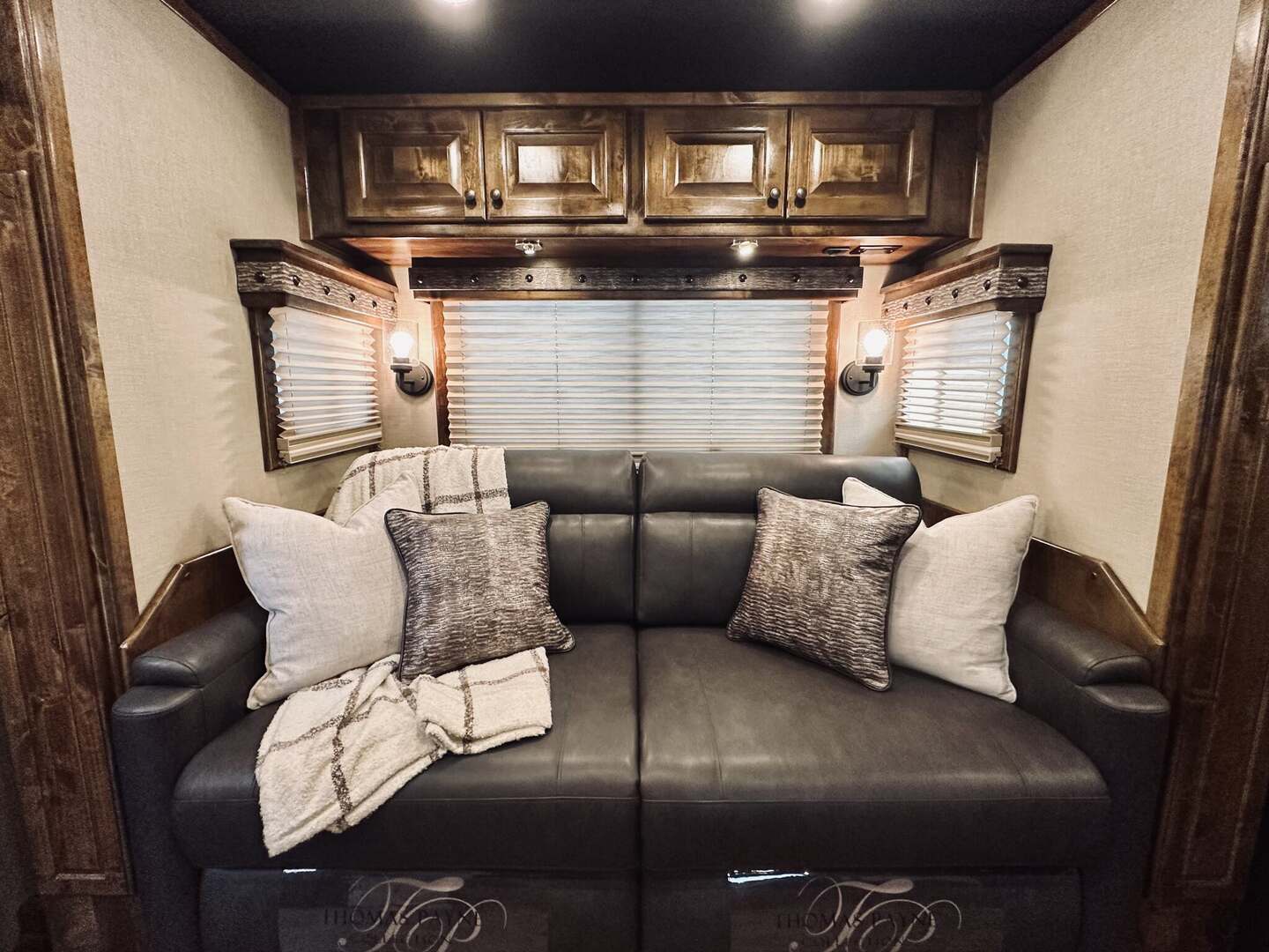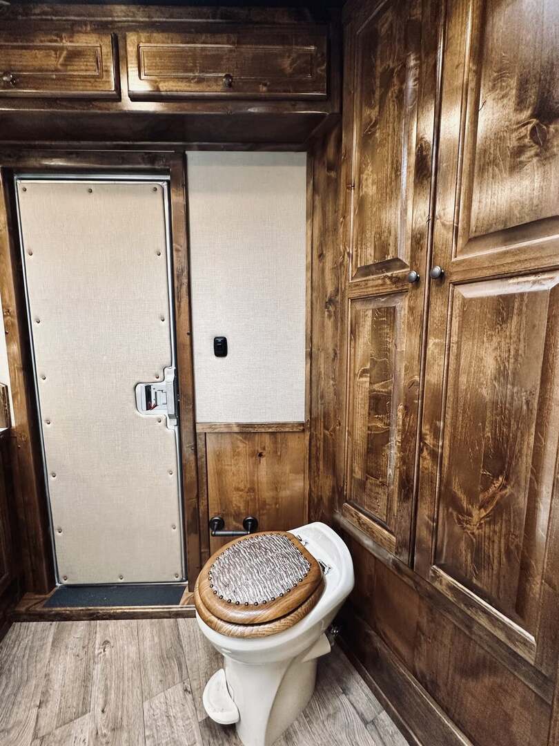 Platinum Coach 5 horse with 14”7” Short wall Outlaw Conversions interior SLIDE OUT with Tri-Fold Sofa and Corner Bench with SIDE LOAD Platinum Coach Features: 8 wide x 37’ long x 8’ tall WERM FLOORING! 70/30 Rear Doors & SIDE LOAD Shelves, bars, hooks and trays in rear tack 4 mangers with escape door at head Drop down window bars on head side Drop down windows on curb side 8’ hay pod & ladder 24” walk through door Baby panel with rubber on first divider Flow through and swing back dividers 2” Blocked axles for additional ground clearance 5 outside halogen load lights 7 tier swing out blanket bar Triple 8,000# axles 17.5” aluminum wheels & 18 ply tires Outlaw Conversion Features: 14’7” short wall 70” tri-fold sofa Corner bench next to slide out 32” SMART TV’S.....WiFi!!!!!!!!!!! Dual-Hydraulic Jacks Dark Knotty Alder raised panel cabinetry Floor and corner cabinetry in nose Onan 4.0 MicroQuiet generator 15,000 BTU A/C & HEAT PUMP 20,000 BTU furnace Electric power awning...NICE!!! TILE BACKSPLASH IN KITCHEN!! 6 gallon hot water heater with Propane heat 40 gallon water tank AM/FM/CD/DVD player with 2 interior and 2 exterior speakers TWO 32” SMART LED flat screens on arm Deep quartz sinks in kitchen and bathroom 2 Hardwood hat racks over R/V door 6.0 refrigerator Recessed 2 Burner cooktop Convection oven with vent hood Extra wide pocket door to bathroom with mirror on bathroom side 32” radius shower w/ bronze glass door & skylight Porcelain toilet with foot flush