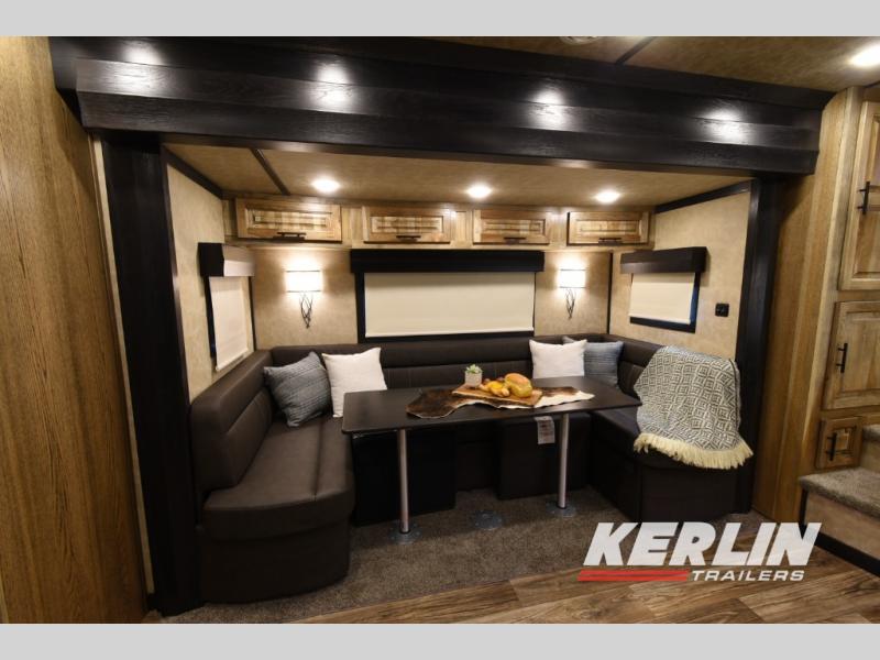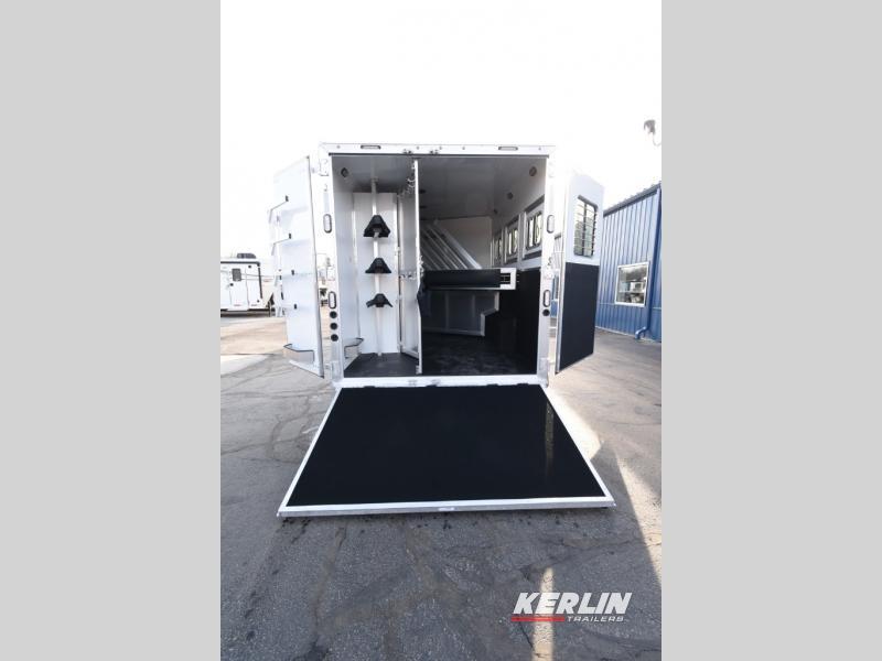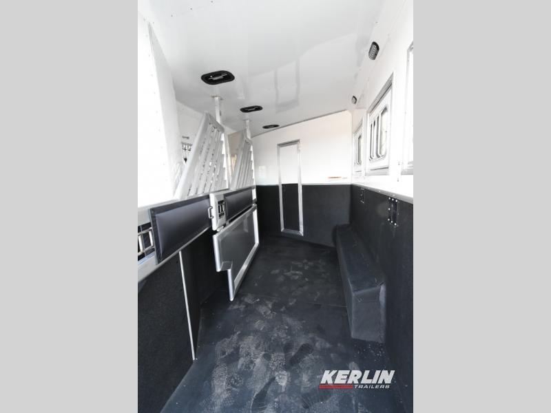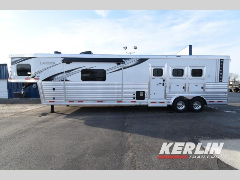Check out this beautiful 3 horse Bighorn Lakota with a U- shaped dinette/ sleeper. This trailer has a ton of cabinet space, a privacy bunk area, 2 tvs, fireplace, radius shower, beautiful interior, lots of counterspace , 3 burner cook top , oven, convection microwave, ramp, mangers, walk through door, escape door, drop down head and tail windows! Call us today, don’t wait on orders if you want one this season!