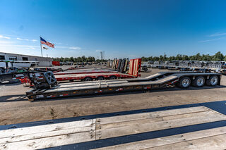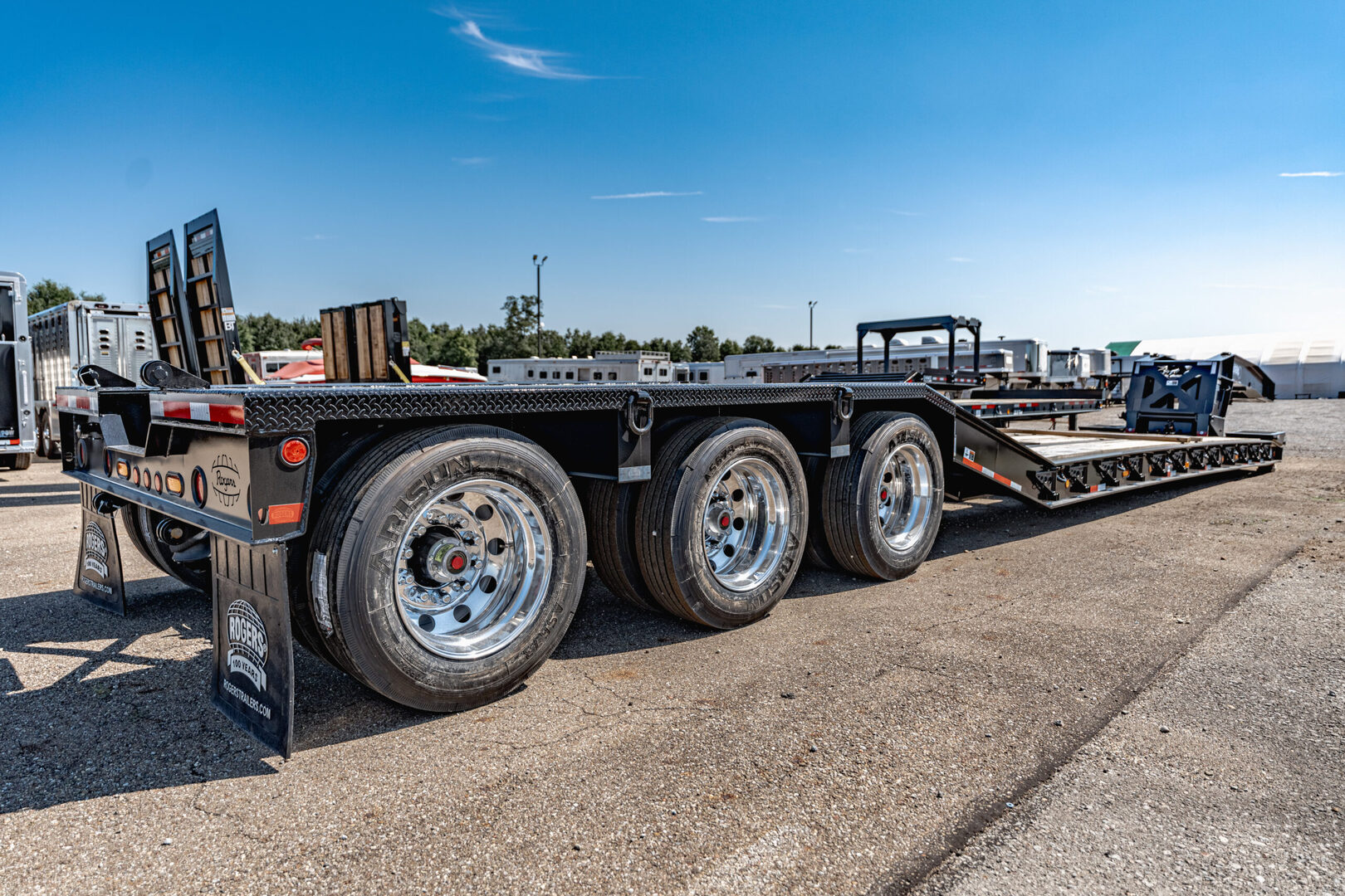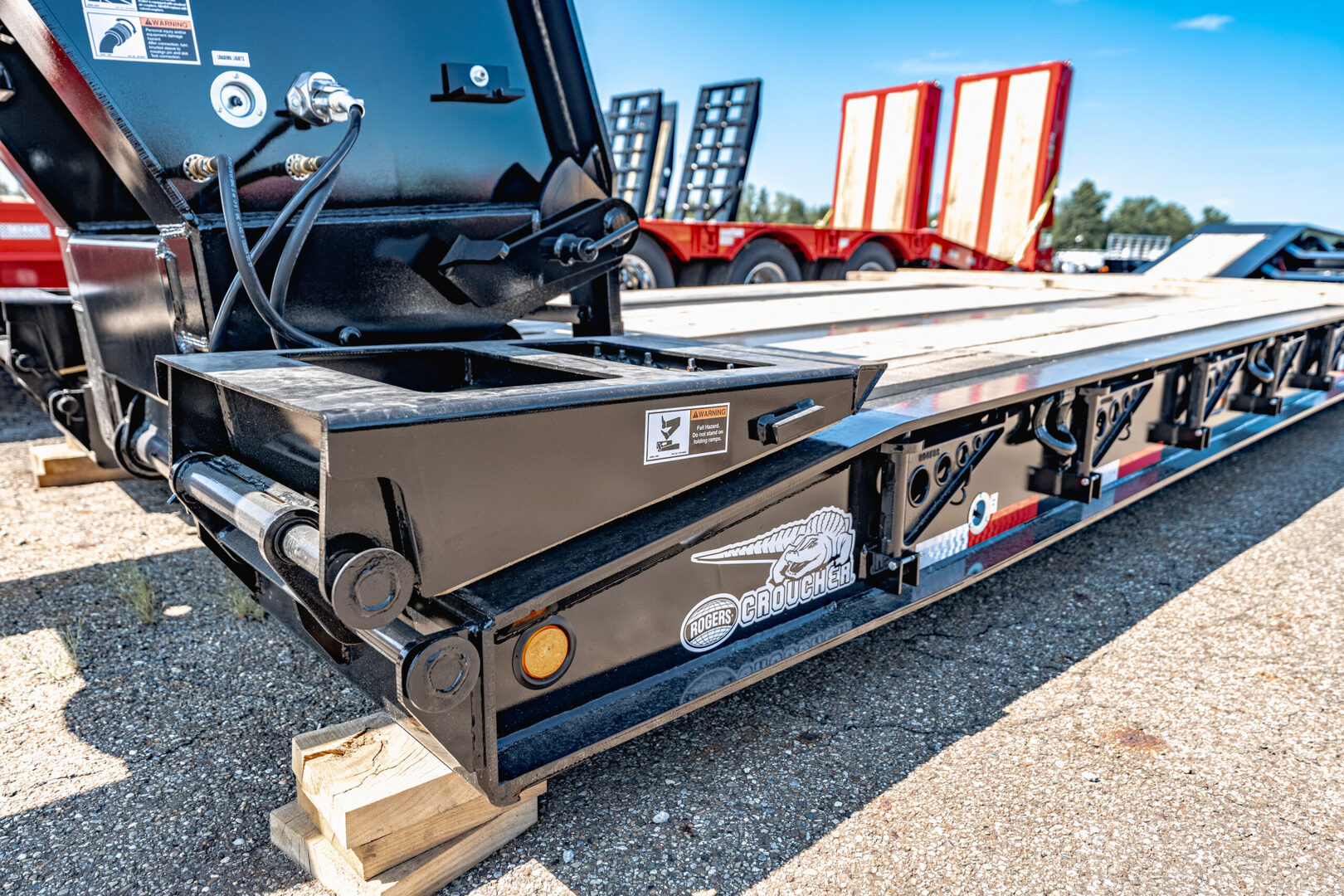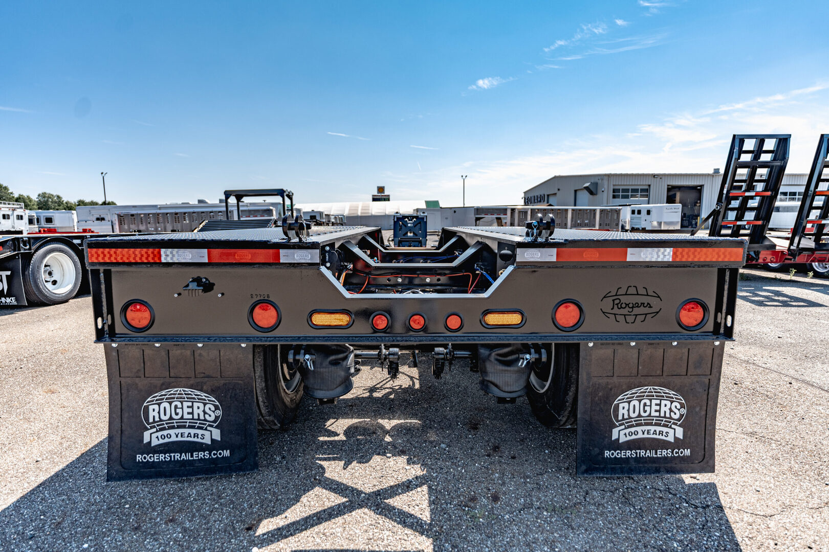 View Inventory: https://leonardtrailers.com/inventory/44021 Stock# 44021 New 2025 Rogers SP55GR110/53/25/102/3XAR SemiTrailer Since 1905 Rogers has been building trailers to haul equipment across the world. Today, you’ll see the Rogers name in all 50 states, and in 65 countries around the globe. Model:SP55GR110/53/25/102/3XAR Warranty: 7yr- Structural Trailer Specifications - SP55GR110/53/25/102/3XAR Frame & Dimensions Frame: 110,000 lbs. max capacity concentrated in 16’ 0” of deck 56’ 4” overall length; 102” maximum width “No-Foot” non-ground engaging 13’ 1” overall gooseneck length; 53” light 5th wheel height x 110” swing clearance Hydraulic power source: Tractor PTO Trap door extension blocks adjust 5th wheel height from 51” to 55” Gooseneck Features Dual arm hydraulic gooseneck jack paddle and shoe (1) standard lashing D on cross member behind kingpin (2) standard lashing D’s on top of each gooseneck beam Steel covered lockable toolbox, front center of gooseneck Deck Platform Four beam cambered design 25’ 0” x 102” platform “Paver Front” tapered to approx. 8 3/8” height 20” loaded deck height with full capacity load “Bucket Pocket” with last 3 center cross members lowered 1 3/4” air dried oak flooring; center boards installed (12) bent lashing D’s — (6) each side of deck Ramps & Side Brackets Adjustable width double-fold front folding ramps, wood covered, with tapered wedge on front (BLACK) Ramps do not extend beyond gooseneck when folded onto deck (24) swinging removable side brackets (22800) (BLACK) 16° Gentle Riser Includes: “Boom Trough” with lowered cross members in riser and rear frame with standard notched rear channel 1/4” tread plate wheel covers, reinforced (NO WHEEL CUTOUTS) Trunnion beams between wheels with a lashing D on each end Hinges/pins installed; air/light lines extended for removable/flip 4th axle (1) pair flag holders on rear channel Axles, Tires, & Suspension Air ride suspension, 25,000 lb. capacity per axle, mechanical height control (3) 25,000 lb. axles; 10-stud hubs with oil-bathed bearings (6) 22.5 x 8.25 10-hole hub piloted steel disc wheels (inner) (6) 22.5 x 8.25 10-hole hub piloted aluminum disc wheels (outer) (12) 275/70R22.5 J18 tubeless radial tires 54 1/2” axle spacings Axle air lift with dual air bags on 3rd axle Air dump valve Brake System Air brakes; 16 1/2” x 7” shoes Automatic slack adjusters ABS system (4S/2M) Spring brakes on (3) axles Cable pull remote air tank drains Finish Rogers Black acrylic polyurethane enamel   We offer outstanding financing options, accept trades, and can arrange nationwide NO HASSLE delivery! Inquire today for more information! (888) 333-6613 **We believe these specifications to be accurate. Any discrepancies are unintentional. Please verify information with a sales associate prior to purchase.** Stock Number:44021