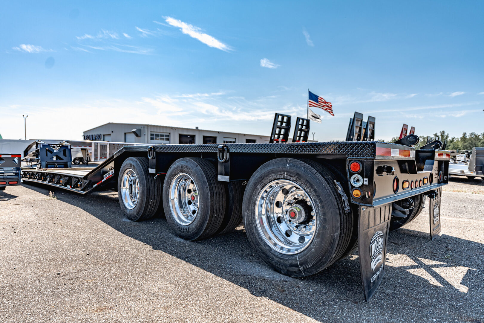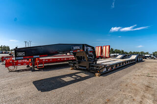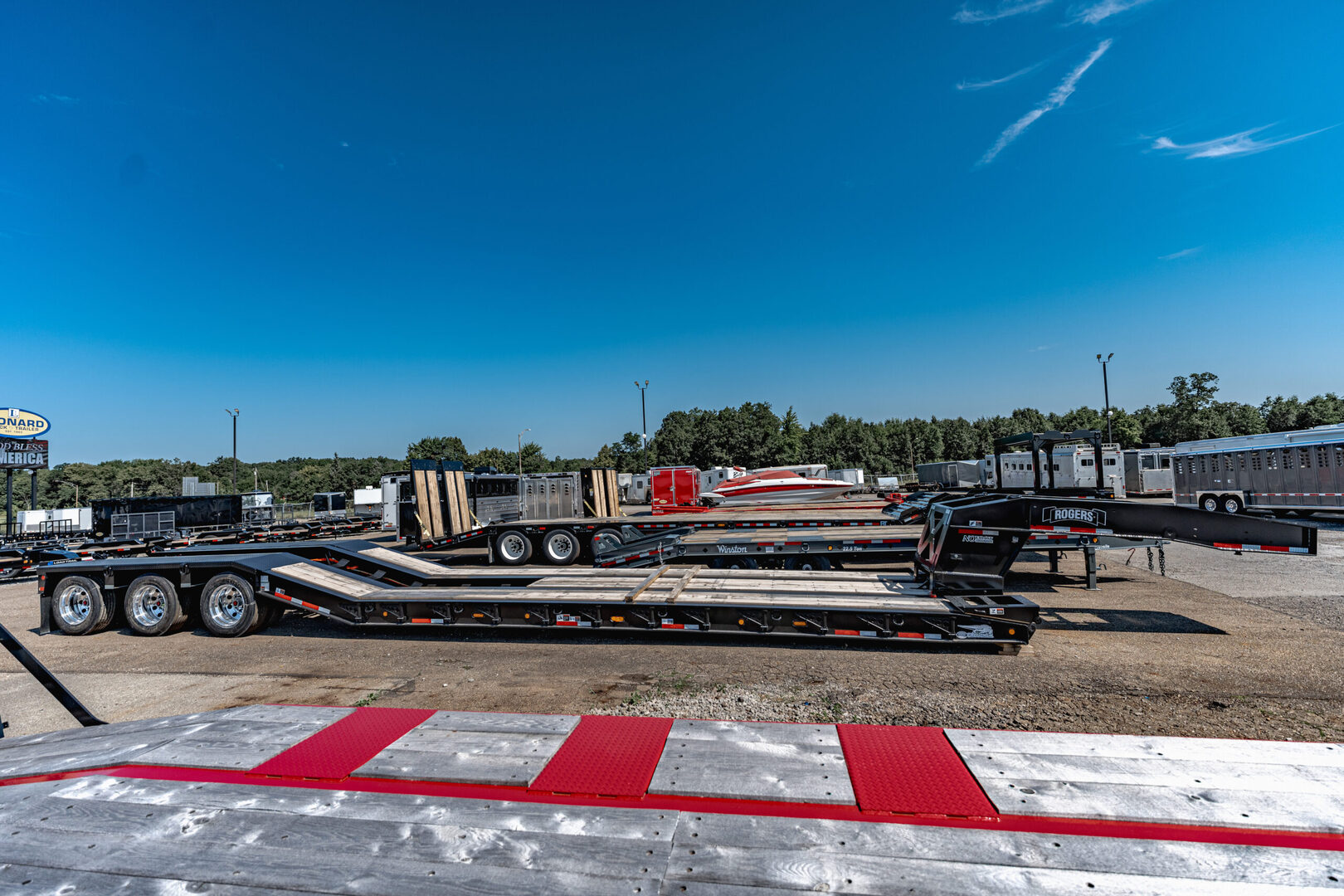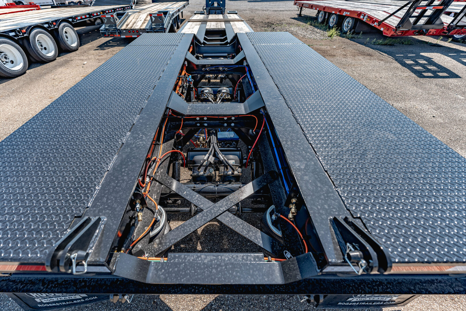View Inventory: https://leonardtrailers.com/inventory/44021 Stock# 44021 New 2025 Rogers SP55GR110/53/25/102/3XAR SemiTrailer Since 1905 Rogers has been building trailers to haul equipment across the world. Today, you’ll see the Rogers name in all 50 states, and in 65 countries around the globe. Model:SP55GR110/53/25/102/3XAR Warranty: 7yr- Structural Trailer Specifications - SP55GR110/53/25/102/3XAR Frame & Dimensions Frame: 110,000 lbs. max capacity concentrated in 16’ 0” of deck 56’ 4” overall length; 102” maximum width “No-Foot” non-ground engaging 13’ 1” overall gooseneck length; 53” light 5th wheel height x 110” swing clearance Hydraulic power source: Tractor PTO Trap door extension blocks adjust 5th wheel height from 51” to 55” Gooseneck Features Dual arm hydraulic gooseneck jack paddle and shoe (1) standard lashing D on cross member behind kingpin (2) standard lashing D’s on top of each gooseneck beam Steel covered lockable toolbox, front center of gooseneck Deck Platform Four beam cambered design 25’ 0” x 102” platform “Paver Front” tapered to approx. 8 3/8” height 20” loaded deck height with full capacity load “Bucket Pocket” with last 3 center cross members lowered 1 3/4” air dried oak flooring; center boards installed (12) bent lashing D’s — (6) each side of deck Ramps & Side Brackets Adjustable width double-fold front folding ramps, wood covered, with tapered wedge on front (BLACK) Ramps do not extend beyond gooseneck when folded onto deck (24) swinging removable side brackets (22800) (BLACK) 16° Gentle Riser Includes: “Boom Trough” with lowered cross members in riser and rear frame with standard notched rear channel 1/4” tread plate wheel covers, reinforced (NO WHEEL CUTOUTS) Trunnion beams between wheels with a lashing D on each end Hinges/pins installed; air/light lines extended for removable/flip 4th axle (1) pair flag holders on rear channel Axles, Tires, & Suspension Air ride suspension, 25,000 lb. capacity per axle, mechanical height control (3) 25,000 lb. axles; 10-stud hubs with oil-bathed bearings (6) 22.5 x 8.25 10-hole hub piloted steel disc wheels (inner) (6) 22.5 x 8.25 10-hole hub piloted aluminum disc wheels (outer) (12) 275/70R22.5 J18 tubeless radial tires 54 1/2” axle spacings Axle air lift with dual air bags on 3rd axle Air dump valve Brake System Air brakes; 16 1/2” x 7” shoes Automatic slack adjusters ABS system (4S/2M) Spring brakes on (3) axles Cable pull remote air tank drains Finish Rogers Black acrylic polyurethane enamel   We offer outstanding financing options, accept trades, and can arrange nationwide NO HASSLE delivery! Inquire today for more information! (888) 333-6613 **We believe these specifications to be accurate. Any discrepancies are unintentional. Please verify information with a sales associate prior to purchase.** Stock Number:44021