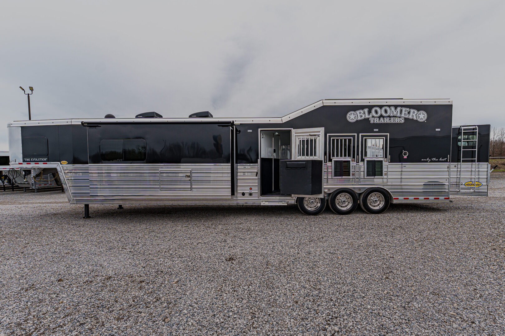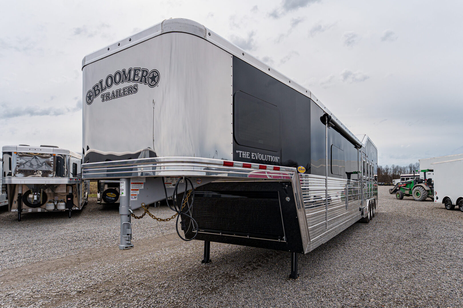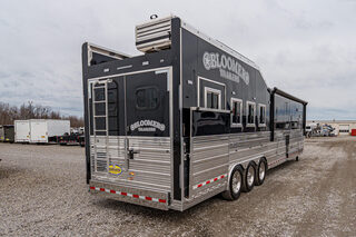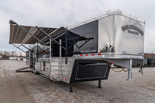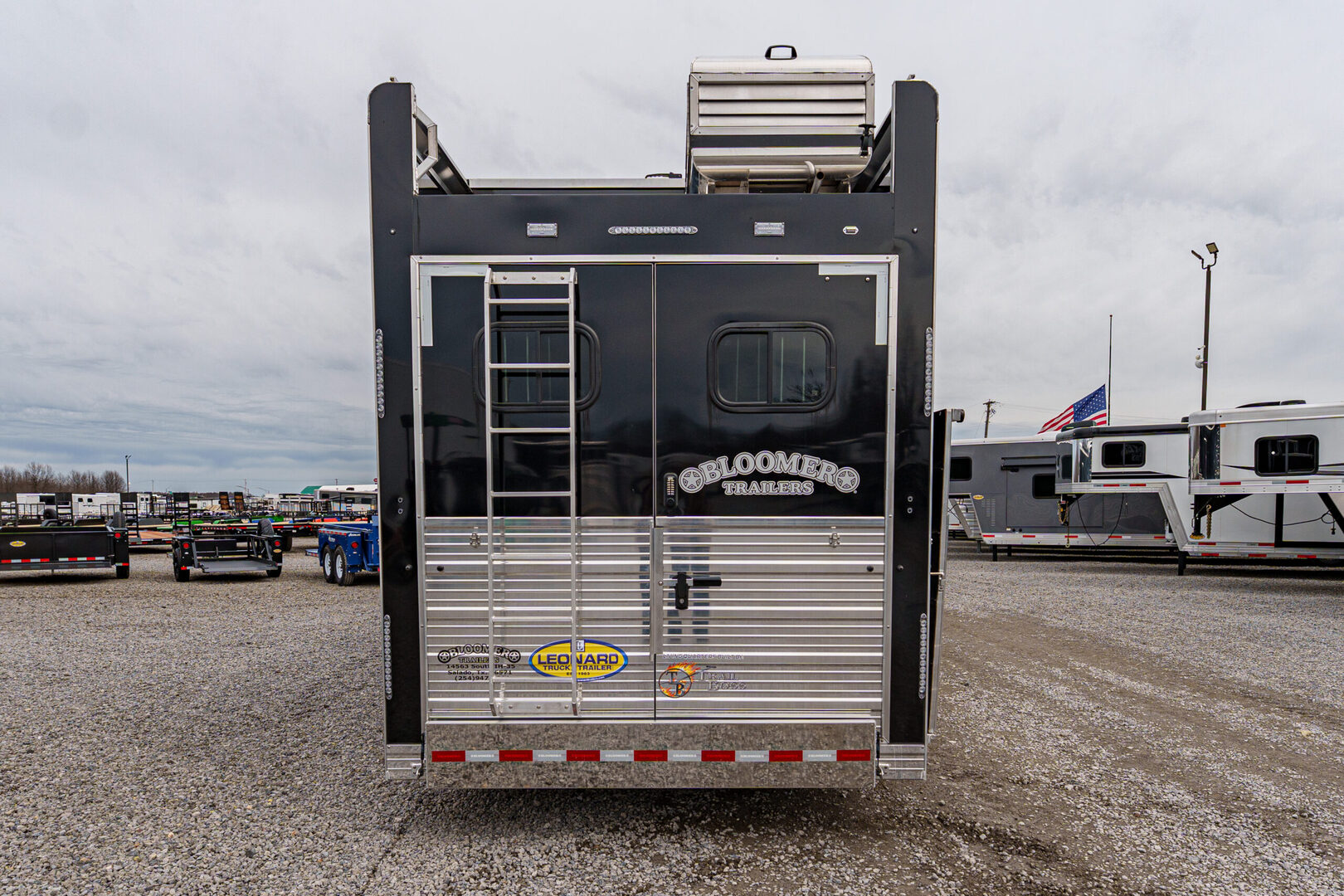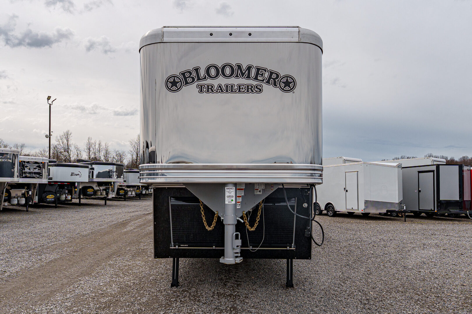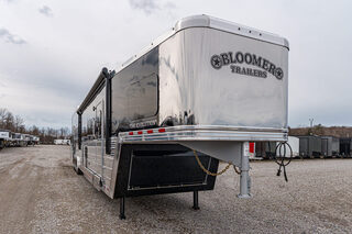 View Inventory: https://leonardtrailers.com/inventory/44993 Every Bloomer trailer includes several advanced features, many of them โ€“ such as the integrated hay pod โ€“ pioneered by Bloomer Trailers. Using the best quality and materials, our products are made to maximize the safety and comfort of your family. Our founder and CEO, Randy Bloomer, has even ridden in our horse compartments to measure vibration levels and find ways to engineer the safest ride possible for your most prized possessions. We never take a shortcut when it comes to you or your horses’ safety. Standard Horse Trailer Features                                                                      Durability and Smooth Ride -Electric hydraulic disc brakes                                                                        - Torsion axles -Spin-balanced premium tires and HD aluminum wheels               - All 2” tube walls and roof construction -Machine-polished continuous slide slat                                                - .040 one-piece continuous roof skin -.050 pre-painted white skin             -Extruded tongue and groove aluminum floorboards with support legs every 6” -Roof cross members set at 16” centers              -Marine carpet on floor, drop and pan -30,000-lb 2-5/16” adjustable coupler               -10,000-lb drop leg jack Centromeric Wheel Balancers                          -Beveled fender wells โ€“ 45 degrees Polished top rail                                                                      Doors and Windows -All doors lined and insulated with integrated hinges          -24” X 24” Drop Windows with protective bars (hip side) -Dressing room door with window                                    -Swinging feed doors with drop down windows (head side) -Permanent window bars in feed doors                                  -15” x 34” sliding windows with protective bars (gooseneck) -50/50 rear doors with windows                                              -Shock-assisted, fold-up step at dressing room door -Swinging feed door Horse Compartment -Lined and insulated roof and walls                                          -Protective rubber on walls and floor -Padding on dividers and chest of each stall                             -Flow-through bars in head and wither shields -Spring-loaded dividers with slam latch                                         -Framed roof vent per stall -Two interior horse ties per stall                                                 -Two recessed spring-loaded exterior horse ties per stall -Shin guard at loading door Storage and Tack -Stationary double wall rear tack                                             -Lined and insulated -Two brush trays                                                                   -One saddle rack tier per horse (up to four) -Ten bridle hooks                                                                        -Blanket bar Electrical -Rocker-style exterior light switches                                   -One LED dome light per divider -Three LED loading lights                                                         -Front and rear junction blocks -All wire connections soldered and protected with shrink tube -All wire routed through aluminum, protected with rubber grommets               -Turn signals high and low Please call us for any info. Stock Number:44993