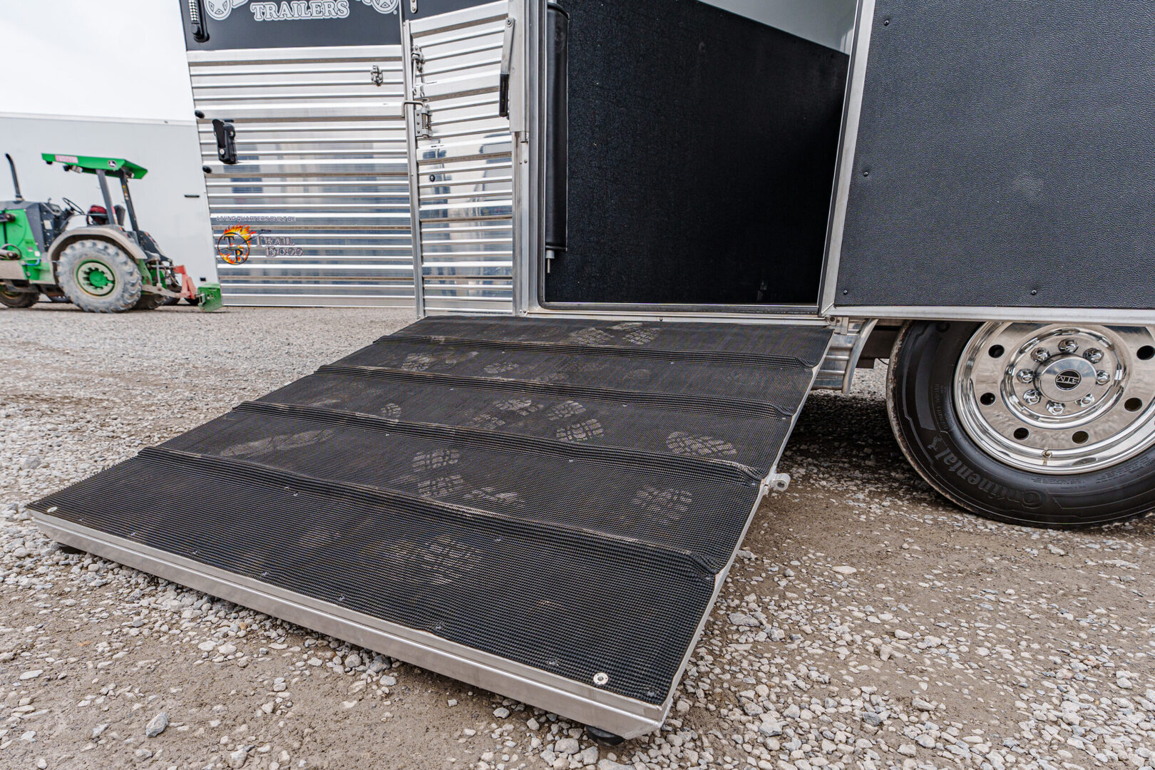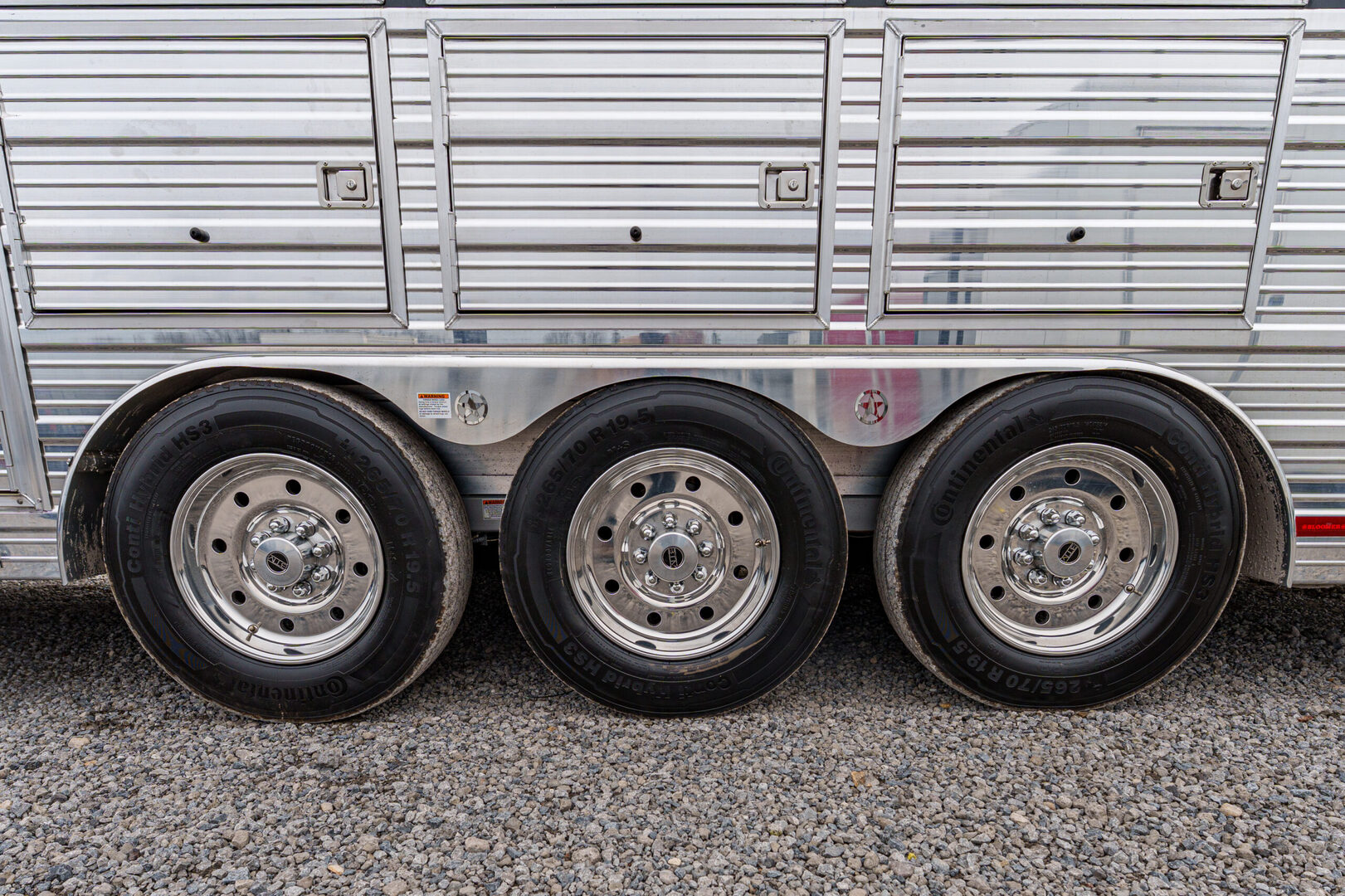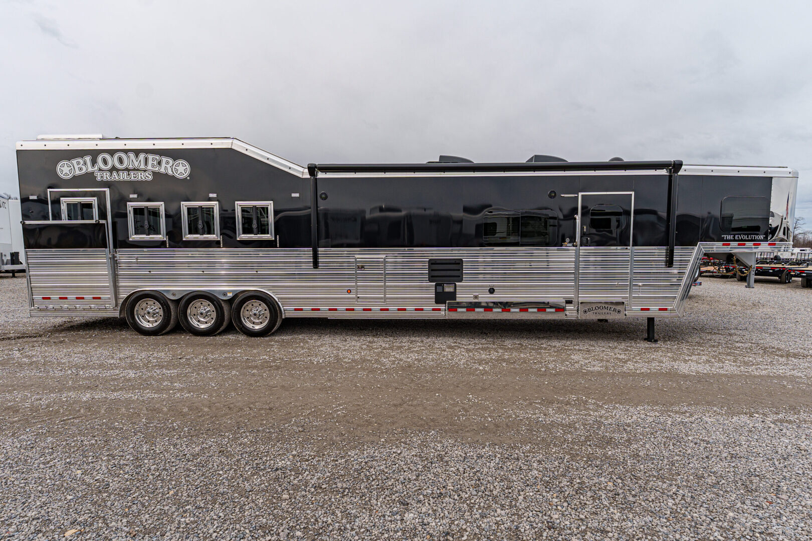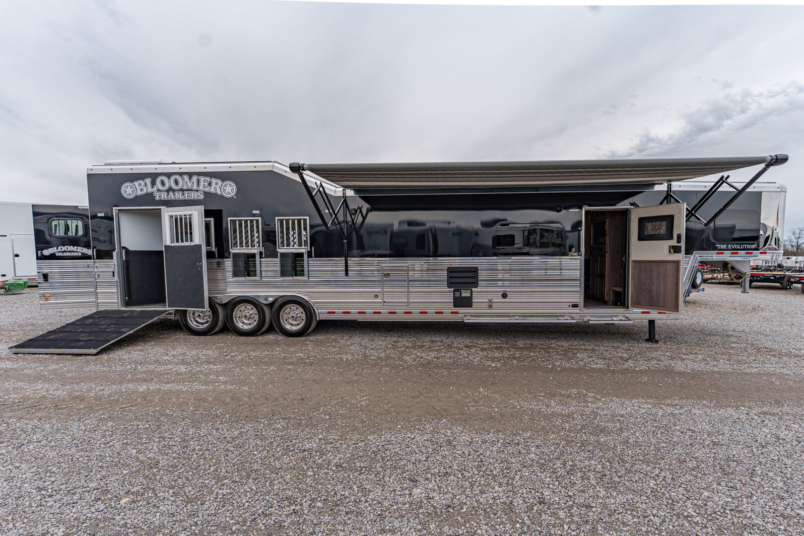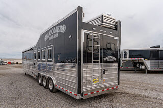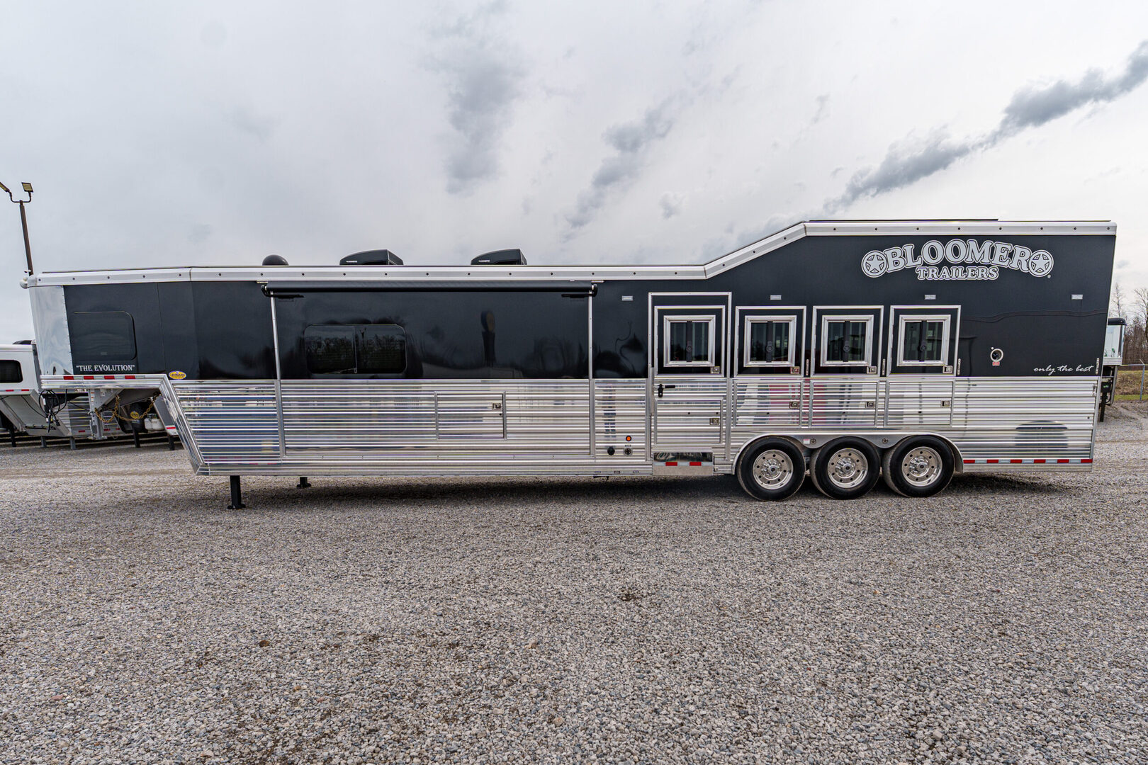 View Inventory: https://leonardtrailers.com/inventory/44993 Every Bloomer trailer includes several advanced features, many of them โ€“ such as the integrated hay pod โ€“ pioneered by Bloomer Trailers. Using the best quality and materials, our products are made to maximize the safety and comfort of your family. Our founder and CEO, Randy Bloomer, has even ridden in our horse compartments to measure vibration levels and find ways to engineer the safest ride possible for your most prized possessions. We never take a shortcut when it comes to you or your horses’ safety. Standard Horse Trailer Features                                                                      Durability and Smooth Ride -Electric hydraulic disc brakes                                                                        - Torsion axles -Spin-balanced premium tires and HD aluminum wheels               - All 2” tube walls and roof construction -Machine-polished continuous slide slat                                                - .040 one-piece continuous roof skin -.050 pre-painted white skin             -Extruded tongue and groove aluminum floorboards with support legs every 6” -Roof cross members set at 16” centers              -Marine carpet on floor, drop and pan -30,000-lb 2-5/16” adjustable coupler               -10,000-lb drop leg jack Centromeric Wheel Balancers                          -Beveled fender wells โ€“ 45 degrees Polished top rail                                                                      Doors and Windows -All doors lined and insulated with integrated hinges          -24” X 24” Drop Windows with protective bars (hip side) -Dressing room door with window                                    -Swinging feed doors with drop down windows (head side) -Permanent window bars in feed doors                                  -15” x 34” sliding windows with protective bars (gooseneck) -50/50 rear doors with windows                                              -Shock-assisted, fold-up step at dressing room door -Swinging feed door Horse Compartment -Lined and insulated roof and walls                                          -Protective rubber on walls and floor -Padding on dividers and chest of each stall                             -Flow-through bars in head and wither shields -Spring-loaded dividers with slam latch                                         -Framed roof vent per stall -Two interior horse ties per stall                                                 -Two recessed spring-loaded exterior horse ties per stall -Shin guard at loading door Storage and Tack -Stationary double wall rear tack                                             -Lined and insulated -Two brush trays                                                                   -One saddle rack tier per horse (up to four) -Ten bridle hooks                                                                        -Blanket bar Electrical -Rocker-style exterior light switches                                   -One LED dome light per divider -Three LED loading lights                                                         -Front and rear junction blocks -All wire connections soldered and protected with shrink tube -All wire routed through aluminum, protected with rubber grommets               -Turn signals high and low Please call us for any info. Stock Number:44993