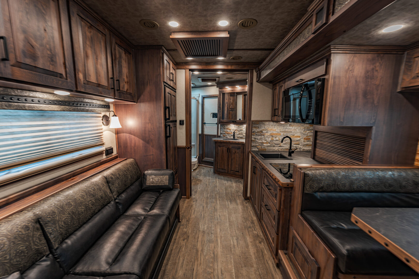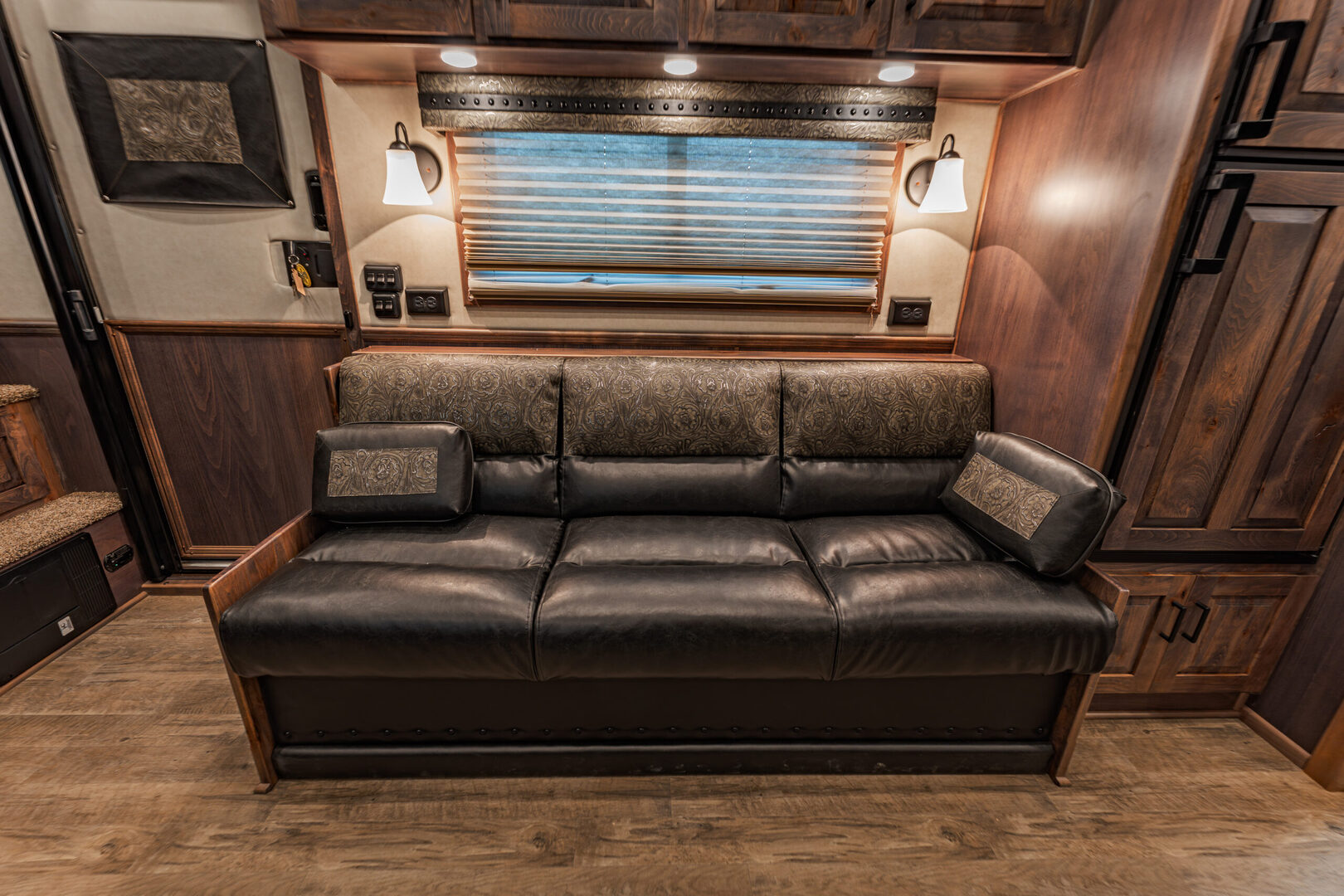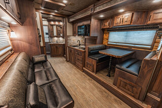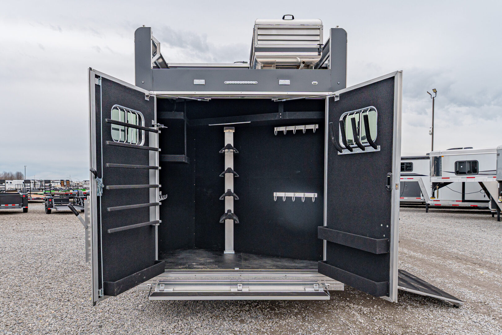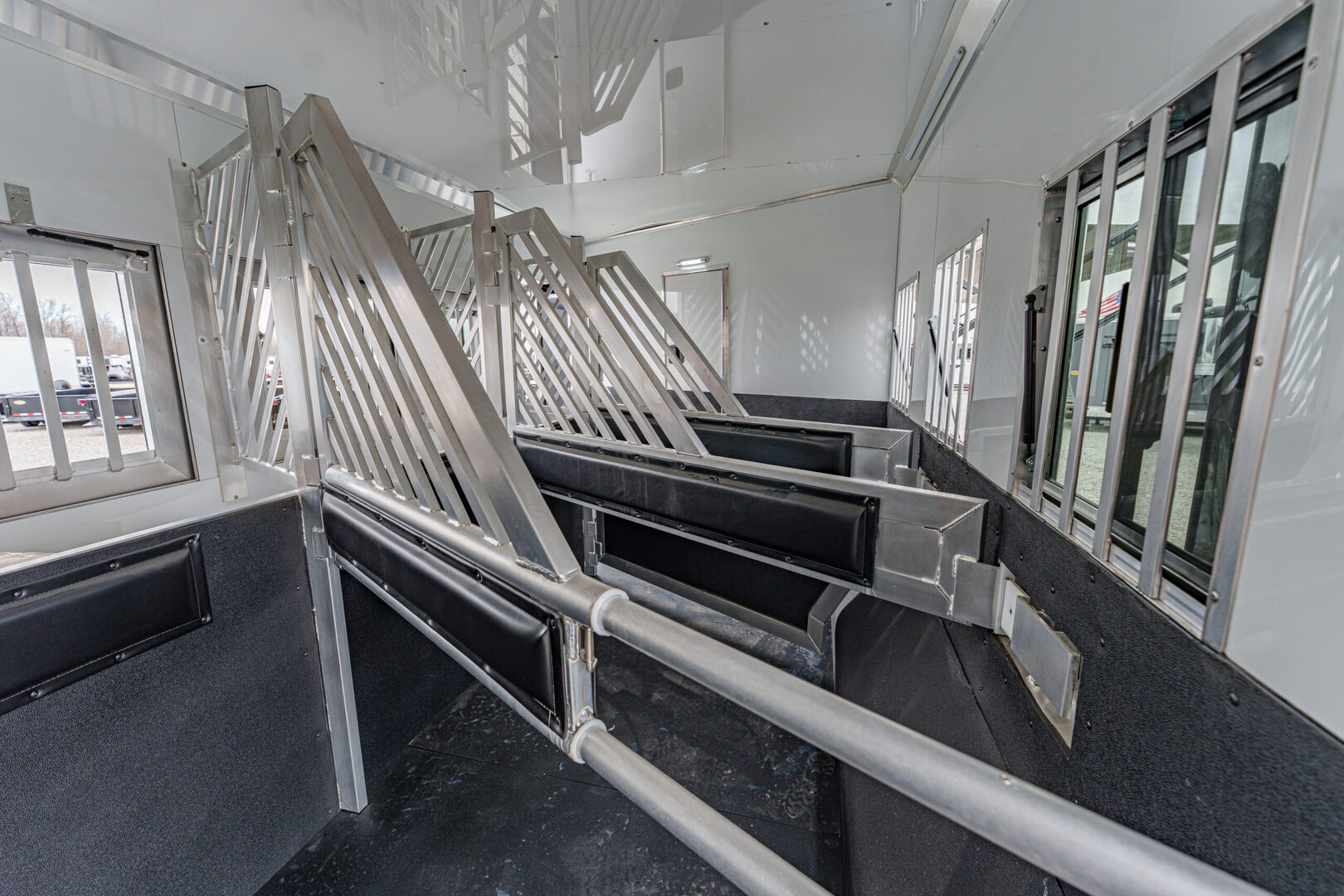 View Inventory: https://leonardtrailers.com/inventory/44993 Every Bloomer trailer includes several advanced features, many of them โ€“ such as the integrated hay pod โ€“ pioneered by Bloomer Trailers. Using the best quality and materials, our products are made to maximize the safety and comfort of your family. Our founder and CEO, Randy Bloomer, has even ridden in our horse compartments to measure vibration levels and find ways to engineer the safest ride possible for your most prized possessions. We never take a shortcut when it comes to you or your horses’ safety. Standard Horse Trailer Features                                                                      Durability and Smooth Ride -Electric hydraulic disc brakes                                                                        - Torsion axles -Spin-balanced premium tires and HD aluminum wheels               - All 2” tube walls and roof construction -Machine-polished continuous slide slat                                                - .040 one-piece continuous roof skin -.050 pre-painted white skin             -Extruded tongue and groove aluminum floorboards with support legs every 6” -Roof cross members set at 16” centers              -Marine carpet on floor, drop and pan -30,000-lb 2-5/16” adjustable coupler               -10,000-lb drop leg jack Centromeric Wheel Balancers                          -Beveled fender wells โ€“ 45 degrees Polished top rail                                                                      Doors and Windows -All doors lined and insulated with integrated hinges          -24” X 24” Drop Windows with protective bars (hip side) -Dressing room door with window                                    -Swinging feed doors with drop down windows (head side) -Permanent window bars in feed doors                                  -15” x 34” sliding windows with protective bars (gooseneck) -50/50 rear doors with windows                                              -Shock-assisted, fold-up step at dressing room door -Swinging feed door Horse Compartment -Lined and insulated roof and walls                                          -Protective rubber on walls and floor -Padding on dividers and chest of each stall                             -Flow-through bars in head and wither shields -Spring-loaded dividers with slam latch                                         -Framed roof vent per stall -Two interior horse ties per stall                                                 -Two recessed spring-loaded exterior horse ties per stall -Shin guard at loading door Storage and Tack -Stationary double wall rear tack                                             -Lined and insulated -Two brush trays                                                                   -One saddle rack tier per horse (up to four) -Ten bridle hooks                                                                        -Blanket bar Electrical -Rocker-style exterior light switches                                   -One LED dome light per divider -Three LED loading lights                                                         -Front and rear junction blocks -All wire connections soldered and protected with shrink tube -All wire routed through aluminum, protected with rubber grommets               -Turn signals high and low Please call us for any info. Stock Number:44993